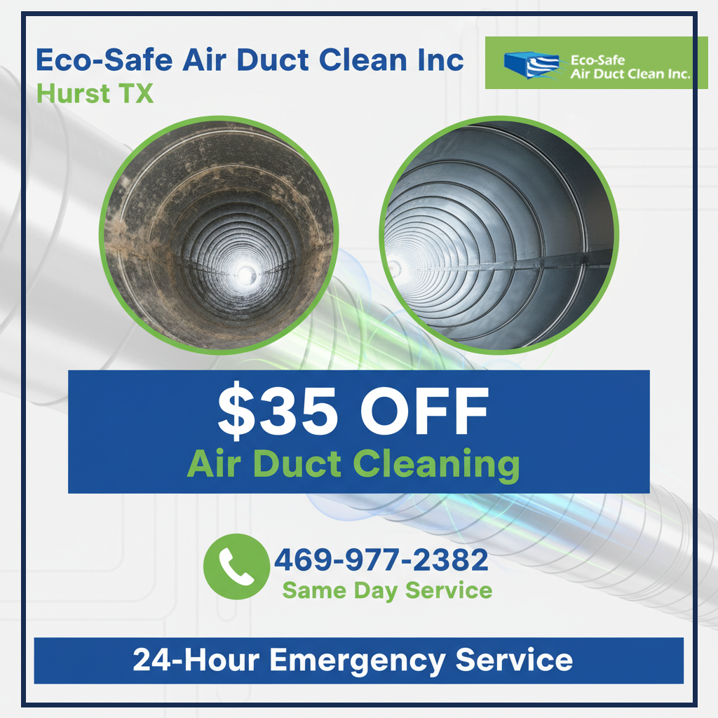 Take advantage of limited-time savings designed to help Hurst homeowners enjoy cleaner air without stretching their budget. Eco Safe Air Duct Cleaning Hurst TX offers straightforward deals with honest pricing, no surprises, and the same reliable service our customers trust every day.